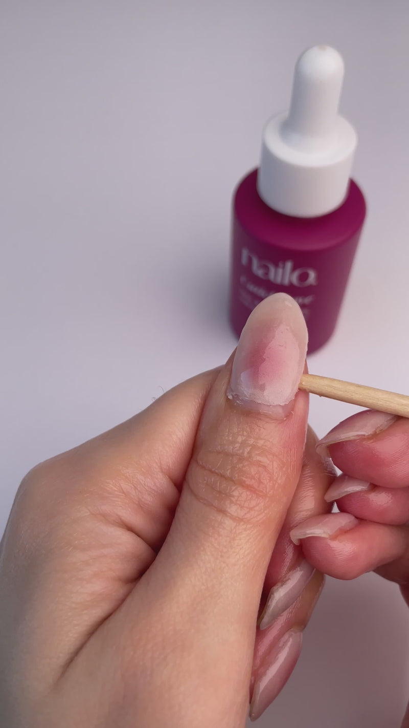 - Breng wat nagelriemolie zoals onze Nailo Cuticle Love Oil aan langs de randen van de sticker.