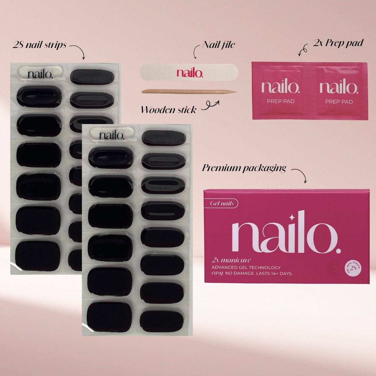 - Clean Beauty: Nailo stickers zijn met zorg geformuleerd. Onze strips zijn onder andere HEMA-vrij, TPO-vrij, vegan en uiteraard dierproefvrij. Zo geniet je van een professionele manicure zonder concessies te doen aan je gezondheid of ethiek